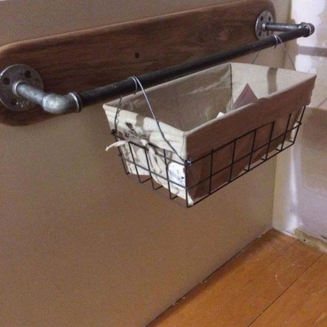 Marquetry Chess Board by Inlay Product World; Industrial style Storage shelf with hanging wire basket, Dan’s Barn Shop